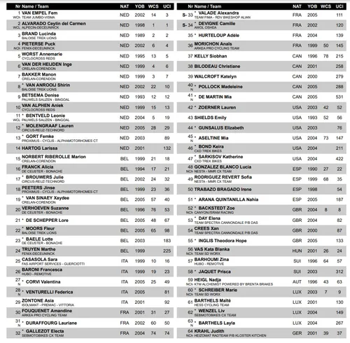 Ondertussen telt het vrouwenveld maar liefst 72 rensters, waaronder alle grote sterren: