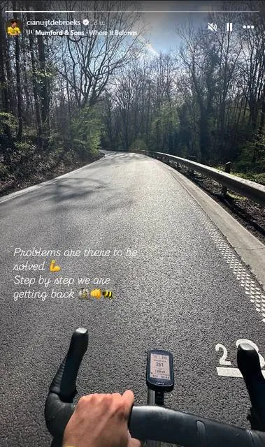 Zelf klonk Uijtdebroeks voorzichtig optimistisch op sociale media. "Problemen zijn er om opgelost te worden," schreef hij bij een foto van zichzelf terug op de fiets, gedeeld via zijn officiële Instagram-account. "Stap voor stap komen we weer terug."