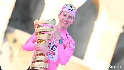 Tadej Pogacar, de onbetwiste winnaar van de Giro, staat centraal.