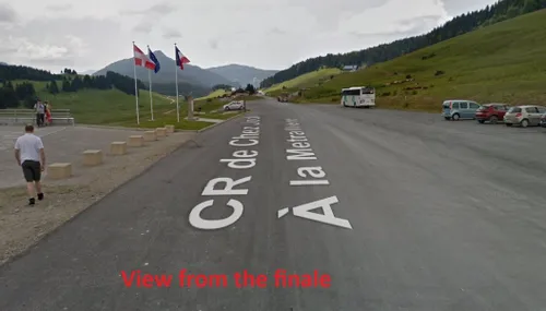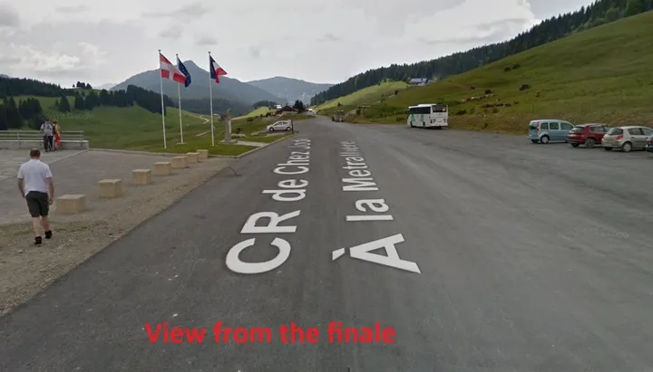 9,4 kilometer aan 7,2% die samenvalt met de finish. Maar deze klim is in werkelijkheid 6 kilometer aan 11%. Constant, ultrasteil en ploegmaats helpen nauwelijks als je met zulke snelheden racet. Het draait allemaal om de benen, vorm en weerstand tegen vermoeidheid. Het zware gedeelte van de klim eindigt met nog iets meer dan 2 kilometer te gaan en de renners volgen een rechte vals plat weg helemaal tot aan het prachtige finalegebied;