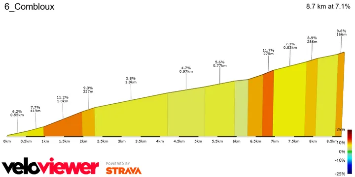 Na deze muur vlakt de weg iets af, maar de resterende kilometers tot aan Combloux blijven onregelmatig, met enkele steilere stroken die nog voor extra schade kunnen zorgen. Het wordt een etappe waar de pure klimmers zich zullen willen tonen – en waar het klassement ongetwijfeld een eerste serieuze vorm begint aan te nemen.