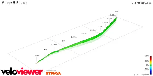 Met nog 9 kilometer te gaan hebben we een kilometer lange klim aan 6% waar meer aanvallen of tempoversnellingen kunnen plaatsvinden. Er volgt een afdaling en dan, na een kleine stijging, de aanloop naar de streep in Sisteron. Een finale die op niets technisch heeft, maar wel vlak is en waar de snelle mannen die het overleefd hebben de voorkeur hebben.
