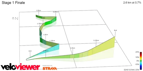 Desondanks eindigt de rit waarschijnlijk in een massasprint, maar het zal geen gemakkelijke finale zijn. De laatste kilometers bevatten scherpe bochten op 2,3, 1,3 en 0,9 kilometer van de finish, wat de sprinters dwingt om technisch sterk te rijden. Bovendien loopt de weg in de laatste 300 meter omhoog met een gemiddelde helling van 4%, wat een extra uitdaging vormt in de eindstrijd.